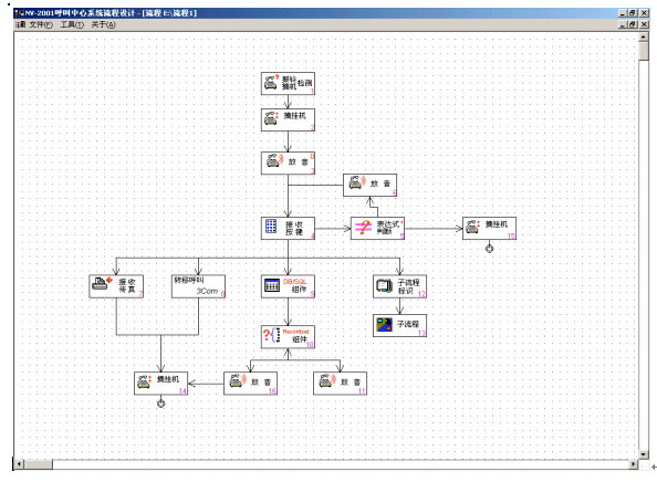 NV-IVR是一個使用方便、功能強大支持持續(xù)開發(fā)的開放式產(chǎn)品。NV-IVR運用圖形化按鈕,直觀顯示各個子模塊的主題,使用者只要通過簡單的拖曳、配置就可以生成一棵樹狀流程圖,直觀地對照IVR的實際運行流程。用戶需要對實際流程進(jìn)行修改,只須對流程圖修建即可。NV-IVR可以完成以下一些主要功能: