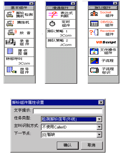 IVR:兩種方案的呼叫中心,目前的IVR系統(tǒng),均采用計算機(jī)語音卡方式進(jìn)行集成。這些語音板卡,既可以采用目前流行的板卡,也可以采用自行設(shè)計的板卡。利用廠商提供的API接口,開發(fā)者可以編寫各種語音流程業(yè)務(wù)。PBX交換機(jī)方案的IVR一般由PBX廠家作了主要的功能開發(fā),使用者只須應(yīng)用、配置;谡Z音板卡的呼叫中心一般板卡廠家提供API接口,開發(fā)者應(yīng)用開發(fā)的靈活性較大。