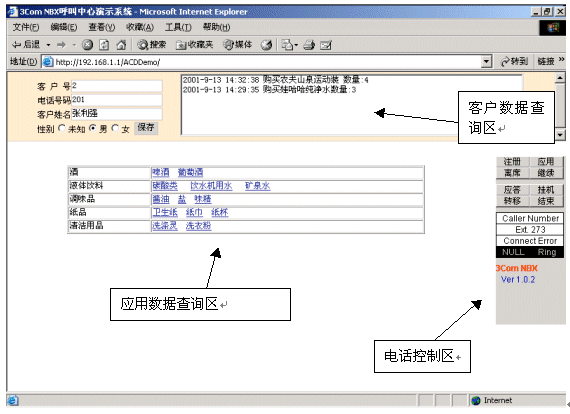 "無聲"一直是企業(yè)電子商務(wù)的最大遺憾,因為"無聲",許多消費者卻步了。怎樣把語音和Web在網(wǎng)絡(luò)上結(jié)合起來?NBX呼叫中心的語音數(shù)據(jù)兩網(wǎng)合一的結(jié)構(gòu),可以方便地讓W(xué)EB訪問用戶與呼叫中心坐席進(jìn)行語音交流。消費者在使用Internet瀏覽時,點擊呼叫按鈕,就可以通過麥克風(fēng)與客服代表通話。并且網(wǎng)上來電與普通來電一樣,經(jīng)過交換及排隊處理,同樣支持來電資料彈出。對客戶來說,只需要一臺接入Internet的多媒體電腦和免費的客戶端軟件就可實現(xiàn)Web瀏覽和交談功能。這個功能不僅可以讓客戶獲得更好的售后服務(wù),在售前服務(wù)中也可發(fā)揮巨大效用。消費者在購買之前必須對產(chǎn)品有充分了解,在網(wǎng)站瀏覽中通過與客戶代表的交流增進(jìn)產(chǎn)品了解,刺激其購買欲望。