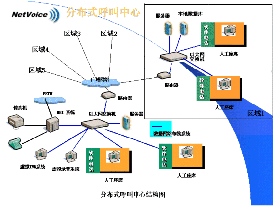 由于代理技能差異、語言差異、呼叫量的差異,以及客戶中心客戶所在地的變化及每個客戶對各自所擁有的用戶資料的保密性需求,分布式呼叫中心往往更適合各類企業(yè)的實際。分布式呼叫中心的建立,意味著需要在多個分中心之間進(jìn)行統(tǒng)一的呼叫控制及語音與同步數(shù)據(jù)轉(zhuǎn)移。NBX網(wǎng)絡(luò)交換機(jī)的引入,兩網(wǎng)合一的特性使分布式呼叫中心的建立成為了一件非常容易的事情。呼叫中心可以擴(kuò)展到多個位于不同地域的局域網(wǎng)上,通過路由選擇可以自動地把呼叫(