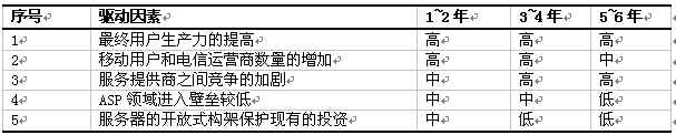 下表顯示了ASP統(tǒng)一信息服務(wù)市場的驅(qū)動(dòng)因素