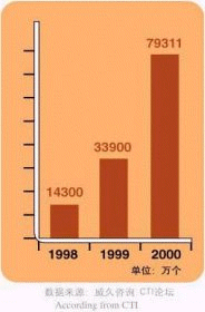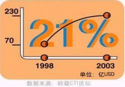 - 據(jù)CTI論壇轉(zhuǎn)引有關(guān)統(tǒng)計(jì)數(shù)字表明,全球呼叫中心外包市場(chǎng)1998年的產(chǎn)值為170億美元,2003年有望達(dá)到420億美元,并正以每年遞增27%的速度快增長(zhǎng);