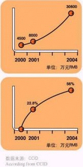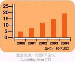 - 在CRM方面,2000年產(chǎn)值為50億美元,預(yù)計(jì)在2004年市場(chǎng)產(chǎn)值將達(dá)到190億美元。