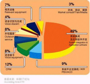 - 中國(guó)CRM市場(chǎng)正在快速增長(zhǎng),從事與呼叫中心有關(guān)產(chǎn)品、服務(wù)和運(yùn)營(yíng)方面的廠商數(shù)量約為620多家。其中,系統(tǒng)集成及應(yīng)用軟件開發(fā)商的數(shù)量占有49%的比例,是呼叫中心從業(yè)廠商中最為主要的組成部分。