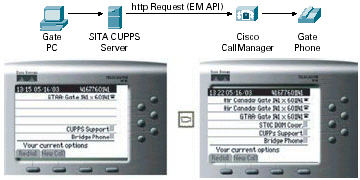 Manager發(fā)出一個HTTP請求,獲取該航空公司的設(shè)備檔案。如果該業(yè)務(wù)代表位于某個登機口柜臺,CUPPS服務(wù)器將請求更改多部電話的配置。這將通過多個HTTP請求實現(xiàn)。應(yīng)當指出的是,允許人工登陸柜臺電話的Extension