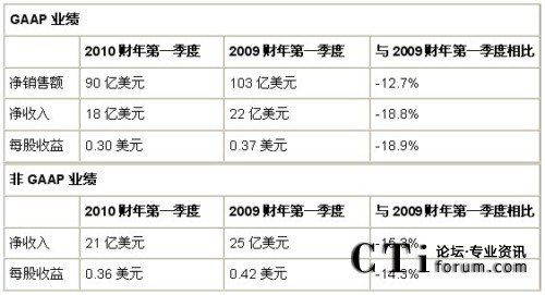 CTI論壇(ctiforum)11月5日消息:全球領(lǐng)先的致力于改進(jìn)人們聯(lián)絡(luò)、溝通和協(xié)作方式的互聯(lián)網(wǎng)解決方案提供商思科今天發(fā)布了截止到2009年10月24日的第一季度業(yè)績(jī)報(bào)告。報(bào)告顯示,第一季度凈銷售額為90億美元,根據(jù)通用會(huì)計(jì)準(zhǔn)則(GAAP)計(jì)算的凈收入為18億美元,合每股0.30美元,非GAAP凈收入為21億美元,合每股0.36美元。