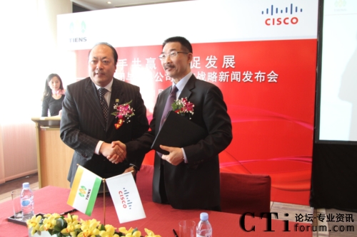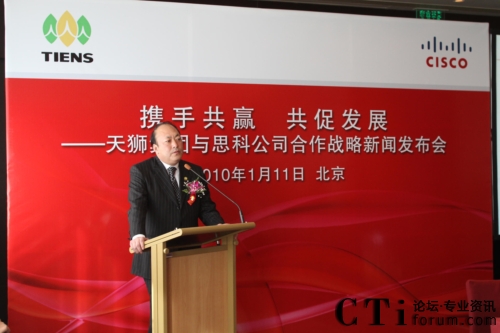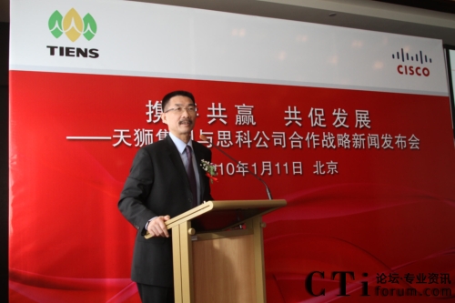 CTI論壇(ctiforum)1月12日消息(記者 張塵):2010年1月11日,北京——“攜手共贏 共促發(fā)展——天獅集團(tuán)與思科公司戰(zhàn)略項(xiàng)目新聞發(fā)布會”在北京召開,雙方共同宣布,天獅集團(tuán)國際健康產(chǎn)業(yè)園網(wǎng)絡(luò)平臺成功啟用,并正式達(dá)成合作戰(zhàn)略。天獅集團(tuán)董事長兼總裁李金元先生與思科全球副總裁、思科中國副董事長兼總裁林正剛先生出席新聞發(fā)布會,并進(jìn)行簽約儀式。通過本次強(qiáng)強(qiáng)聯(lián)合,思科面向服務(wù)的網(wǎng)絡(luò)架構(gòu)(SONA)全面部署于天獅集團(tuán)國際健康產(chǎn)業(yè)園,為天獅集團(tuán)業(yè)務(wù)的穩(wěn)定持續(xù)發(fā)展以及信息化水平的進(jìn)一步提升提供了可靠保證,同時(shí)也為雙方未來更深層次的合作打下了堅(jiān)實(shí)的基礎(chǔ)。