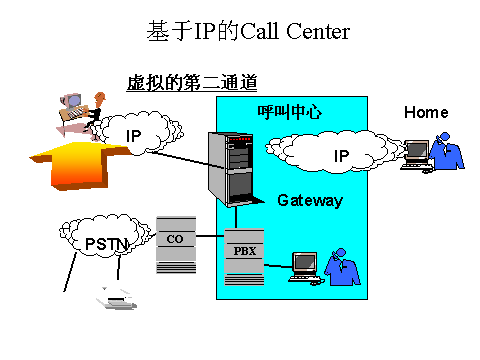 目前擁有呼叫中心基礎(chǔ)設(shè)施(這些設(shè)施包括自動(dòng)呼叫分配器ACD、IVR系統(tǒng)或呼叫管理系統(tǒng))的企業(yè)安裝一個(gè)互聯(lián)網(wǎng)電話網(wǎng)關(guān)作為通向ACD或呼叫中心轉(zhuǎn)換的前端。網(wǎng)關(guān)作為公用電話交換網(wǎng)與互聯(lián)網(wǎng)絡(luò)之間的橋梁,使呼叫中心能夠向客戶和潛在客戶傳送同步語(yǔ)音和數(shù)據(jù)服務(wù),所有這一切都通過(guò)一條電話線。按數(shù)字顯示,網(wǎng)關(guān)可通過(guò)模擬線路與現(xiàn)有設(shè)備連接,或通過(guò)數(shù)字線路與多媒體PC連接。這使得呼叫中心能夠利用其現(xiàn)有設(shè)備,工作人員培訓(xùn)和呼叫管理活動(dòng)中的原有投資。