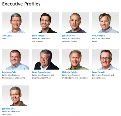 導(dǎo)語:《福布斯》雜志撰稿人維多利亞·平欽(Victoria Pynchon)周日撰文指出,史蒂夫·喬布斯(Steve Jobs)辭職后,給蘋果留下了一個(gè)完全由男性構(gòu)成的管理團(tuán)隊(duì),雖然他們個(gè)個(gè)才華橫溢,對公司極度忠誠,但缺乏女性的支持使這個(gè)團(tuán)隊(duì)的未來蒙上一層陰影。