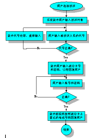 投訴可以自動(dòng)完成,提示用戶(hù)輸入投訴的科室和醫(yī)院服務(wù)人員的代號(hào)。