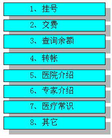 對(duì)于主流程里面的醫(yī)院介紹、科室介紹和專(zhuān)家介紹,只需要用戶(hù)按鍵選擇即可。而且對(duì)用戶(hù)不加限制,任何用戶(hù)(包括沒(méi)有就診卡的用戶(hù))也可以查詢(xún)。