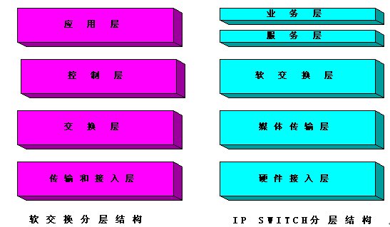 。。SUNTEK IP SWITCH的設(shè)計(jì)概念參考業(yè)界前瞻性的NGN體系,其體系結(jié)構(gòu)與軟交換的分層結(jié)構(gòu)的對(duì)應(yīng)關(guān)系如下: