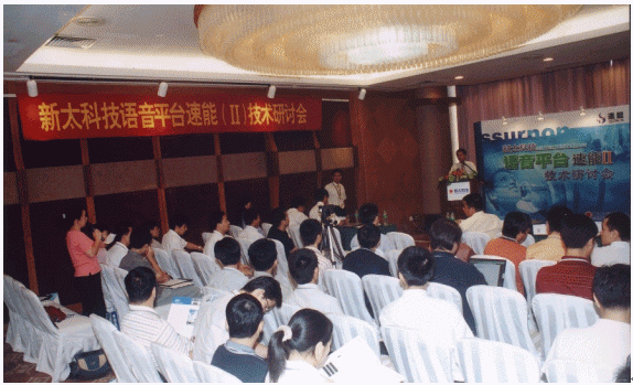 7月23日,新太科技在廣州花園酒店舉行"語音平臺速能II技術(shù)研討會"。新太科技執(zhí)行總裁梁平、副總裁何健明,開發(fā)中心副經(jīng)理張少文,營銷中心國際業(yè)務(wù)部副總經(jīng)理馬任遠(yuǎn)、產(chǎn)品經(jīng)理黃偉,新太科技合作伙伴Intel公司通訊產(chǎn)品業(yè)務(wù)部戰(zhàn)略客戶經(jīng)理林競宇,新太語音平臺速能產(chǎn)品核心代理商--廣州納特威科技公司總經(jīng)理黃淡輝,渠道總代理商--深圳意科特實(shí)業(yè)有限公司總經(jīng)理李面換等到會并作主題發(fā)言!吨袊(jì)算機(jī)報》、《計(jì)算機(jī)世界》、《SP計(jì)算機(jī)產(chǎn)品與流通》、IT168共四家專業(yè)媒體記者到會采訪。