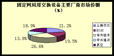 (2)市場特點(diǎn):市場份額進(jìn)一步向業(yè)內(nèi)領(lǐng)先者集中,華為技術(shù)、上海貝爾、BISC 依然保持該領(lǐng)域三甲地位,市場份額占市場總量的67.3%。上述三家廠商各自的市場份額分別占到市場總量的26.6%、21.2%、19.5%。 此外,以中興通訊 、華為技術(shù)為代表的非外資設(shè)備廠商積極開拓國外市場以實(shí)現(xiàn)其國際化發(fā)展戰(zhàn)略。 中心城市市場趨于飽和,市場競爭焦點(diǎn)向本地網(wǎng)機(jī)型拆換和中小城市以下市場轉(zhuǎn)移。激烈的價(jià)格競爭導(dǎo)致該市場平均利潤微薄。