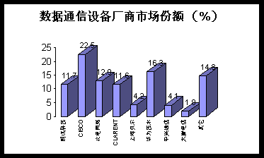(3)市場發(fā)展及預(yù)測: 2001年數(shù)據(jù)通信設(shè)備市場仍會(huì)保持高速增長,在網(wǎng)絡(luò)交換平臺(tái)、接入服務(wù)器、路由器等高端產(chǎn)品領(lǐng)域,非外資通信設(shè)備廠商有望繼續(xù)擴(kuò)大領(lǐng)地,外資廠商如CISICO、IBM、HP等預(yù)計(jì)會(huì)下延其產(chǎn)品線不斷向中低端產(chǎn)品滲透。市場競爭的加劇可能促使更多的企業(yè)進(jìn)行戰(zhàn)略性合作。網(wǎng)絡(luò)運(yùn)營業(yè)務(wù)準(zhǔn)入門檻的降低將再度加劇運(yùn)營商間的競爭,由此會(huì)進(jìn)一步拉動(dòng)數(shù)據(jù)通信設(shè)備市場的需求、促成設(shè)備廠商與運(yùn)營商在多層面上合作。