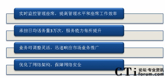 北京農(nóng)村商業(yè)銀行呼叫中心項(xiàng)目負(fù)責(zé)人在接受采訪時(shí)表示,從銀行的運(yùn)營(yíng)管理角度而言,通過部署IPCC解決方案,實(shí)現(xiàn)了以下改變:一、實(shí)時(shí)監(jiān)控管理座席,提高了管理水平和座席工作效率;二、系統(tǒng)日承擔(dān)話務(wù)量3萬次,服務(wù)能力有所提升;三、可以靈活調(diào)整業(yè)務(wù),迅速相應(yīng)市場(chǎng)業(yè)務(wù)推廣;四、優(yōu)化了網(wǎng)絡(luò)架構(gòu),保障了網(wǎng)絡(luò)安全。