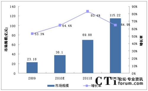 圖:2009-2012中國移動(dòng)位置服務(wù)市場規(guī)模預(yù)測(億元)