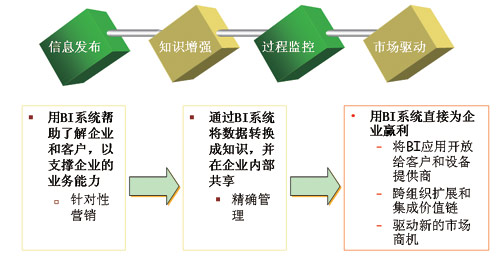 而在當(dāng)前企業(yè)轉(zhuǎn)型的關(guān)鍵階段,我們更要強(qiáng)調(diào),通過BI系統(tǒng)對(duì)數(shù)據(jù)的分析挖掘形成企業(yè)內(nèi)部能夠共享的知識(shí),真正運(yùn)用到企業(yè)運(yùn)營的各個(gè)環(huán)節(jié)中去,支撐精細(xì)化營銷和精確化管理等。