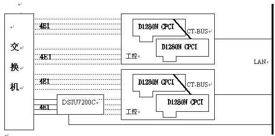 業(yè)務(wù)交換點(diǎn)(SSP)功能可由東進(jìn)公司高性能的網(wǎng)關(guān)DSIU7200U和數(shù)字卡D1280N CompactPCI配合完成。系統(tǒng)配置方式靈活,性能穩(wěn)定,升級擴(kuò)容方便,易于開發(fā),為客戶提供高性價(jià)比解決方案。