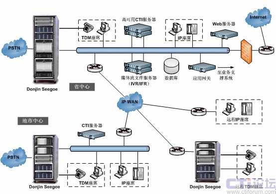 東進(jìn)Seegoe呼叫中心解決方案的系統(tǒng)架構(gòu)如圖四所示。