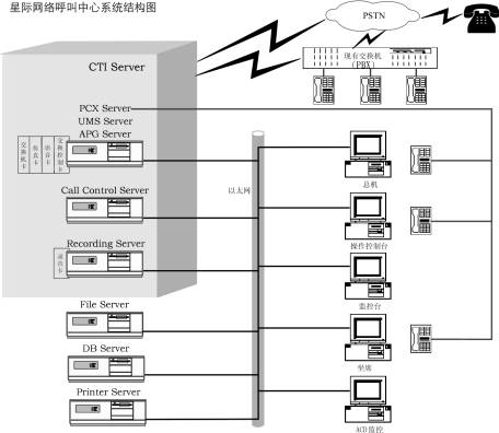 系統(tǒng)主要由座席卡、數(shù)據(jù)庫(kù)服務(wù)器等硬件設(shè)備和系統(tǒng)應(yīng)用軟件構(gòu)成。它以電話服務(wù)為主要方式、結(jié)合對(duì)計(jì)算機(jī)信息系統(tǒng)的資料數(shù)據(jù)的統(tǒng)計(jì)、分析、運(yùn)用,為客戶(hù)提供全方位的服務(wù)。