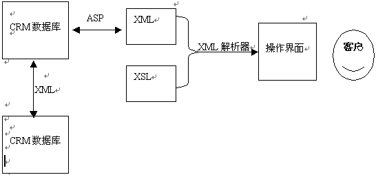 包括客戶資料,銷售報(bào)表等相關(guān)的客服信息都存儲(chǔ)在數(shù)據(jù)庫(kù)中,通過(guò)ASP應(yīng)用程序取出需要的數(shù)據(jù)生成符合條件的XML文檔,再通過(guò)安裝在服務(wù)器端的XML解析器按照預(yù)先設(shè)定的排版樣式XSL解析XML文檔,最后生成符合條件的HTML格式的CRM操作界面呈現(xiàn)在客戶面前。客戶數(shù)據(jù)可能來(lái)自不同的數(shù)據(jù)庫(kù),并且都有各自不同的復(fù)雜格式。但客戶與這些數(shù)據(jù)庫(kù)間只通過(guò)一種標(biāo)準(zhǔn)語(yǔ)言進(jìn)行交互,那就是XML。由于XML的自定義性及可擴(kuò)展性,它足以表達(dá)各種類型的數(shù)據(jù)。客戶收到數(shù)據(jù)后可以進(jìn)行處理,也可以在不同數(shù)據(jù)庫(kù)間進(jìn)行傳遞。