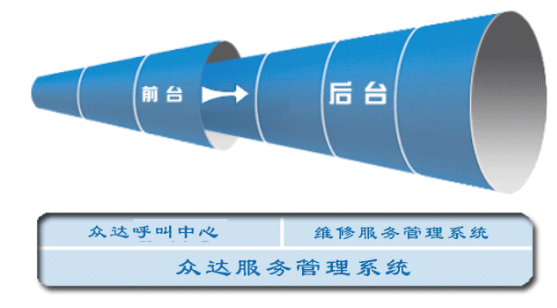 眾達客服管理系統(tǒng)分為呼叫中心系統(tǒng)和維修服務管理系統(tǒng)兩部分,呼叫中心系統(tǒng)主要負責電話接入,對話務員接聽電話的全過程進行管理、記錄、統(tǒng)計以及實現自動語音應答、自動呼叫分配等智能功能;維修服務管理系統(tǒng)(B/S結構)主要負責記錄通過"呼叫中心"得到的客戶資料,跟蹤處理維修服務流程,記錄和統(tǒng)計服務數據。