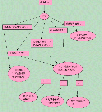 在交互式語音應答系統(tǒng)IVR的幫助下,各服務流程有條不紊地進行,每個職能部門管理自己部門的流程,提供全方位的客戶所要求的服務。下面我們以銷售咨詢?yōu)槔,看看這個簡單的工作流程。
