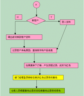 可以根據訂單上的不同顏色來判斷流程走到的階段。流程開始時候,訂單的列表中會產生一條紅色記錄,部門經理登錄審核后使該紅色記錄變成黃色,倉庫人員根據黃色記錄發(fā)貨后使黃色記錄變成綠色。