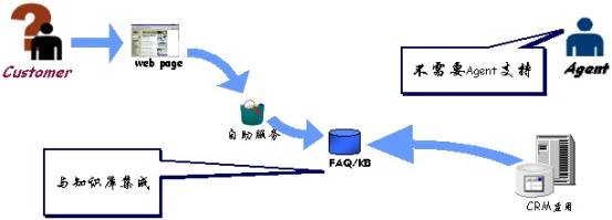 自助服務(wù):實(shí)際上,客戶咨詢的很多問題都屬于FAQ。對(duì)于這類問題,Quintus WebCenter提供“自助服務(wù)”,用戶無須客服代表的幫助,即可快速獲得答案,這一方面可減少企業(yè)客服代表的數(shù)量,另一方面提高了用戶咨詢的響應(yīng)速度。此外,CRM的管理人員可通過FAQ管理加入新的FAQ,或去掉過時(shí)的FAQ。