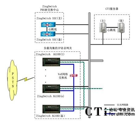 同時(shí)基于ZingSwitch® CVNET平臺的系統(tǒng)網(wǎng)絡(luò)架構(gòu)中,AG100(IP語音網(wǎng)關(guān))自身具有99.999%的高穩(wěn)定性外,具有負(fù)載均衡能力保證語音接續(xù)的不中斷。
