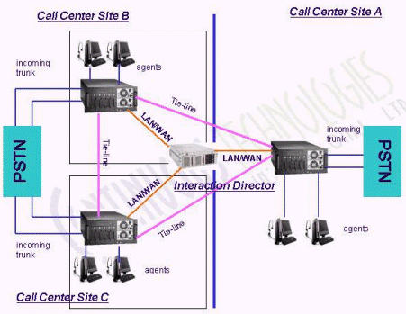 Interaction Director的功能比Interaction Multi-Site還要強(qiáng)大的多,不但支持Interaction Multi-Site的具有的功能外,還支持更大規(guī)模的分布式系統(tǒng)、呼叫前和呼叫后路由(呼叫前路由采用SS7信令,需要電信運(yùn)營(yíng)商的支持)以及真正的網(wǎng)絡(luò)排隊(duì)機(jī)(Network ACD)等。Interaction Director通常安裝在一臺(tái)單獨(dú)的服務(wù)器上,用來(lái)決定最佳分布點(diǎn)的系統(tǒng)處理來(lái)電。Interaction Director可以實(shí)時(shí)監(jiān)控各個(gè)分布點(diǎn)的系統(tǒng)負(fù)載,坐席、技能、隊(duì)列等狀態(tài)。采用Interaction Director可以方便的實(shí)現(xiàn)分布式呼叫中心系統(tǒng)的負(fù)載均衡和災(zāi)難備份。舉例來(lái)說(shuō),在周末話務(wù)量較小的情況下,為節(jié)省資源和運(yùn)營(yíng)成本,可以將北京中心的所有來(lái)電路由至上海中心處理;又如,上海中心發(fā)生故障,可以將所有來(lái)電路由至北京中心處理。
