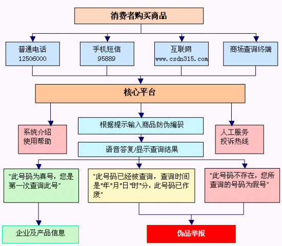 在國(guó)家計(jì)委和國(guó)務(wù)院信息辦的直接領(lǐng)導(dǎo)下,以及在質(zhì)檢、工商、醫(yī)藥等職能部門的配合下,國(guó)家信息中心正式啟動(dòng)國(guó)家級(jí)防偽工程 -- 數(shù)碼防偽公共服務(wù)系統(tǒng)建設(shè)。該系統(tǒng)綜合利用了當(dāng)前最先進(jìn)的技術(shù),集CTI技術(shù)、語(yǔ)音技術(shù)、網(wǎng)絡(luò)通信技術(shù)、計(jì)算機(jī)加密技術(shù)、以及大型數(shù)據(jù)庫(kù)技術(shù)于一體,服務(wù)于產(chǎn)品防偽和打假,支持企業(yè)采用現(xiàn)代信息技術(shù)開展防偽工作,提高防偽效能,并為廣大消費(fèi)者提供安全和質(zhì)量的保障。
