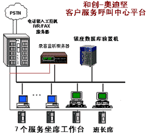 和創(chuàng)科技公司推出的和創(chuàng)-奧迪堅(jiān)(銀行客戶服務(wù)呼叫中心)系統(tǒng)采用了CTI(Computer Telephony Integration)領(lǐng)域當(dāng)今最先進(jìn)的技術(shù)--基于一體化平臺(tái)的呼叫中心。