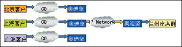 目標(biāo)服務(wù)客戶分散于各地,而客戶服務(wù)中心的座席集中于一地,通過(guò)IP將各地話務(wù)路由到座席所在地進(jìn)行電話服務(wù),大大節(jié)省呼叫中心座席的人工成本和通訊成本。