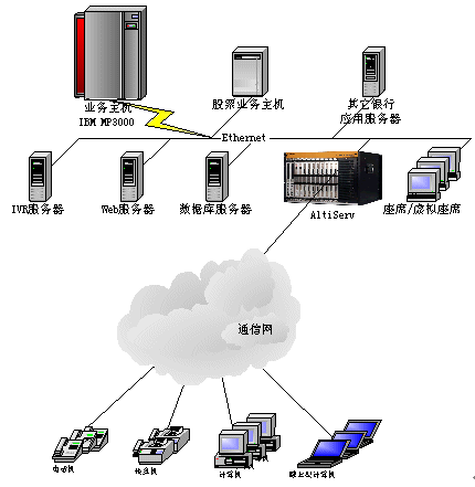。。目標是建立一個功能完善的客戶服務中心,涵蓋自動語音應答(IVR)、人工座席、WEB呼叫、客戶資料查詢統(tǒng)計以及與現(xiàn)有的銀行其他業(yè)務系統(tǒng)的結合。整個系統(tǒng)采用奧迪堅呼叫中心系統(tǒng)AltiCenter,系統(tǒng)以一個特定號碼xxxxx作為呼叫中心的系統(tǒng)號碼(也可提供多個電話號碼),集中受理客戶的業(yè)務需求,為客戶提供綜合性服務。它能與Internet、資料庫系統(tǒng)很好地集成,實現(xiàn)資料共用和各種其他不同的業(yè)務功能。