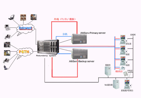 奧迪堅全球領(lǐng)先的CTI平臺的供應商和IP分布式呼叫中心的領(lǐng)導者,在技術(shù)上不斷創(chuàng)新,對產(chǎn)品精益求精,尤其體現(xiàn)在對系統(tǒng)的運行安全性的要求上,為了防止電信接入設(shè)備或者企業(yè)網(wǎng)絡出現(xiàn)故障而造成的呼叫中心服務中斷,奧迪堅呼叫中心系統(tǒng)提供安全保護冗余切換系統(tǒng),來保障呼叫中心在意外情況下的正常工作,該安全冗余切換系統(tǒng)通過對電源、T1/E1、模擬trunk、分機座席、以及各種網(wǎng)絡鏈路串口等備份切換來實現(xiàn)可靠的運行。除此之外,奧迪堅系統(tǒng)本身也提供強大的安全保障,由于采用先進IP內(nèi)核一體化設(shè)計,集傳統(tǒng)PBX、CTI服務器、IVR、ACD、Recording、FAX等眾多設(shè)備于一體,這樣有效的避免了因為外掛設(shè)備過多以及設(shè)備供應商的不同而存在的兼容性的問題,從而降低了給呼叫中心系統(tǒng)帶來的的不穩(wěn)定的安全隱患。在系統(tǒng)之外依靠安全保護冗余切換系統(tǒng),可以實現(xiàn)外線、分機、以及各種鏈路接口的雙倍安全運行。當啟用了冗余功能,并且已經(jīng)激活了主服務器,系統(tǒng)會將所有的許可協(xié)議,配置,語音信箱文件以及客戶短語等復制到次服務器上。