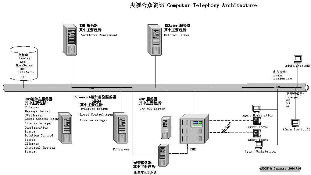由于簽約時距離2005年春節(jié)聯(lián)歡晚會只有不足2個月的時間,勝利完成春節(jié)聯(lián)歡晚會時的電話服務(wù)工作就成為CCTV公眾資訊中心和eSOON的最大目標(biāo)。因?yàn)橛脩舨捎昧顺墒斓膃SOON解決方案(CTI-Genesys ERS;IVR-Genesys GVP;CRM-eSOON EZactor),所以整個系統(tǒng)在短短一個月內(nèi)就完成了上線工作。在經(jīng)過詳細(xì)的測試及全面的人員培訓(xùn)后整個系統(tǒng)經(jīng)受住了春節(jié)聯(lián)歡晚會的考驗(yàn),圓滿完成了晚會的電話、短信的支撐工作。徹底擺脫了前幾年系統(tǒng)不堪應(yīng)付突發(fā)大量呼叫的窘境,提升了CCTV公眾資訊有限公司的服務(wù)品質(zhì)。