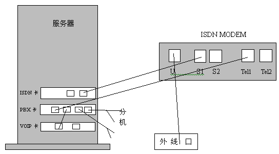 目前,很多的客戶采用的上網(wǎng)方式是ISDN接入,我們來說明一下如何用ISDNNBX3000系統(tǒng)進(jìn)行連接。