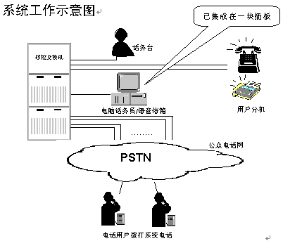 該系統(tǒng)可作為程控交換機銷售商的配套模塊配給新用戶,也可用于電力、院校、企業(yè)集團(tuán)、政府機關(guān)等已擁有交換機的單位加配電腦話務(wù)員和語音信箱及114查號臺功能。