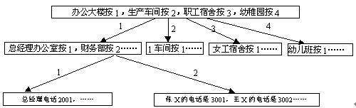 舉例 如某單位分機號碼結(jié)構(gòu)如下所示,該單位的查號臺序號可分三級: