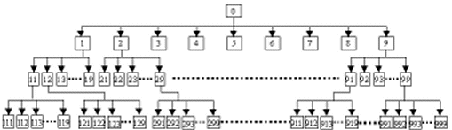 查號臺提示音可分4級,第1級序號為0,這一級固定為0;第2級序號為1、2、3~9;第3級序號為11、12~19、21、22~29……91、92、93~99,共81個;第4級序號為111、112、~119、121、122、~129、131、……999共729個。如下圖所示。