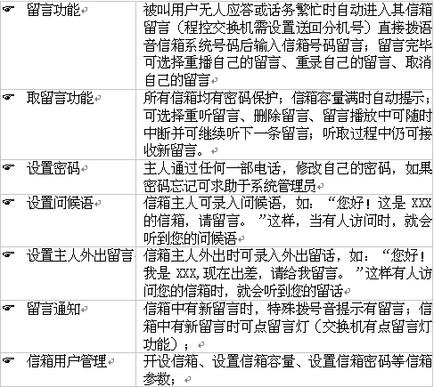 若您要的分機正在忙或分機主人不在電話機旁,可直接轉(zhuǎn)到留言信箱,止項功能要求在交換機數(shù)據(jù)庫中設(shè)置分機遇忙/無應(yīng)答轉(zhuǎn)移到留言信箱。