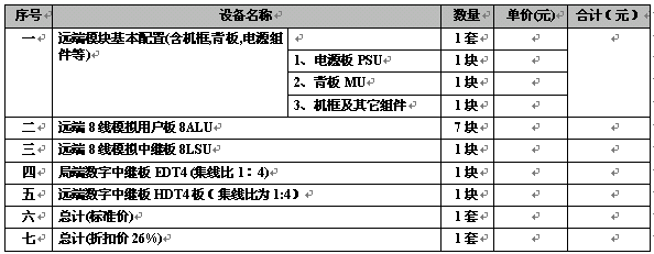 1.單套遠(yuǎn)端模塊主機(jī)(128門(mén)容量,帶主叫模擬用戶(hù)門(mén),模擬中繼路)