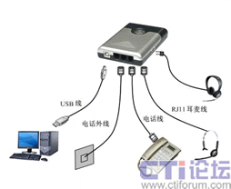 “話務(wù)通”設(shè)計新穎,接口包括電話線路接口、電話機(jī)接口、耳機(jī)接口和USB通信接口。配置立體聲揚(yáng)聲器和環(huán)型提示燈,提供聲光提示。“話務(wù)通”能夠提供IP網(wǎng)絡(luò)電話,自動應(yīng)答,自動外撥,來電彈屏,語音錄放,語音留言等功能。