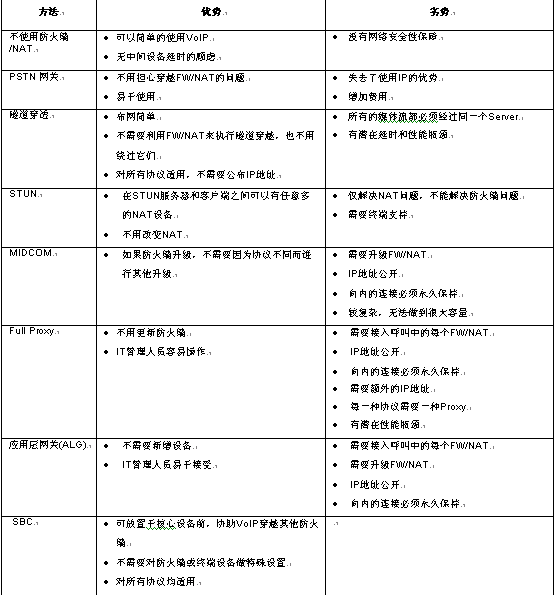 4 各種語(yǔ)音穿越防火墻技術(shù)的優(yōu)劣比較