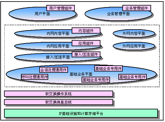 業(yè)務(wù)驅(qū)動軟交換平臺是建立在IP基礎(chǔ)設(shè)施之上的自我管理的分布式的開放網(wǎng)絡(luò)計(jì)算環(huán)境。是向下一代電信業(yè)務(wù)演進(jìn)的重要基礎(chǔ)設(shè)施。業(yè)務(wù)驅(qū)動軟交換平臺的結(jié)構(gòu)是組件式的。支持組件之間通信的軟交換硬件平臺、軟交換操作系統(tǒng)和軟交換消息總線將這些軟硬件組件構(gòu)成一個(gè)業(yè)務(wù)整體。同時(shí),業(yè)務(wù)驅(qū)動的軟交換具備業(yè)務(wù)開發(fā)的支持工具以實(shí)現(xiàn)對業(yè)務(wù)的開發(fā)。這個(gè)軟交換平臺同時(shí)也具備對自身的管理功能。下圖描述了業(yè)務(wù)驅(qū)動軟交換平臺上的組件和它們的關(guān)系。