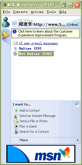5月26日,微軟最新即時通訊軟件MSN Messenger的最新版本MSN Messenger Beta 6.0.0250被提前遭遇外泄,使得大家提前領略到了微軟最新的即時通訊軟件風采。這也是微軟.net計劃中的一個重要組成部分,也讓我們看到了一些微軟“格林威治(Greenwich)”的影子!案窳滞(Greenwich)”――是微軟基于.net戰(zhàn)略的能夠?qū)崟r進行通信等的服務器軟件的開發(fā)代號。由于未對外正式發(fā)布,此次公開的是MSN
