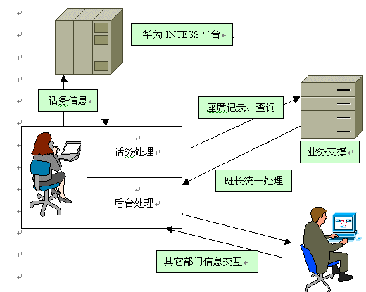 該系統(tǒng)在鐵通CRIS 平臺(tái)上運(yùn)行,前端接入采用華為CC08-A型排隊(duì)機(jī),華為INTESS平臺(tái),集成正邦高科座席軟件。完成企業(yè)業(yè)務(wù)咨詢、投訴建議的受理、產(chǎn)品訂購(gòu)、外呼調(diào)查等業(yè)務(wù),并針對(duì)各業(yè)務(wù)的特色規(guī)劃了企業(yè)的業(yè)務(wù)流程。正邦高科客戶服務(wù)系統(tǒng)的坐席軟件,和華為INTESS采用緊耦合方式將話務(wù)信息和業(yè)務(wù)信息結(jié)合在一起,便于統(tǒng)計(jì)分析,制訂客戶服務(wù)中心的運(yùn)營(yíng)策略。在后臺(tái)業(yè)務(wù)管理系統(tǒng)中,客戶服務(wù)系統(tǒng)設(shè)計(jì)了便于分析業(yè)務(wù)的一系列統(tǒng)計(jì)報(bào)表,使企業(yè)可以方便地對(duì)銷售過(guò)程進(jìn)行跟蹤和定單派發(fā)。