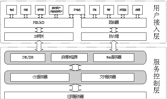 即多媒體客服中心的接入端,包括IVR流程、人工坐席等,它是用戶進入多媒體客服中心客服系統(tǒng)的入口,它將直接面對用戶并收集各種信息。支持電話、傳真、電子郵件、WEB訪問、WAP、PDA、IP電話、網(wǎng)絡(luò)電話、視頻電話等多種方式接入。